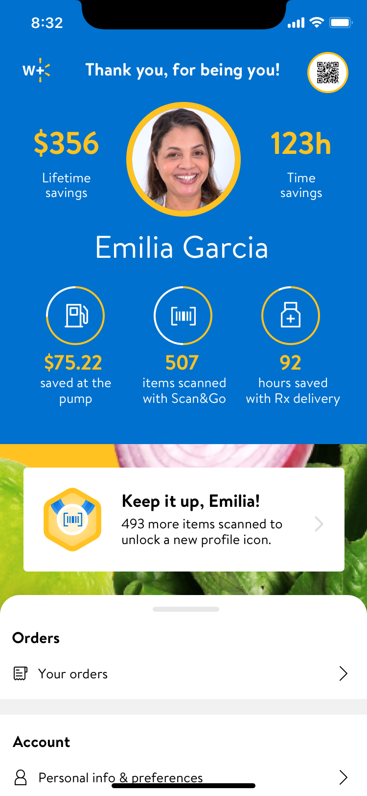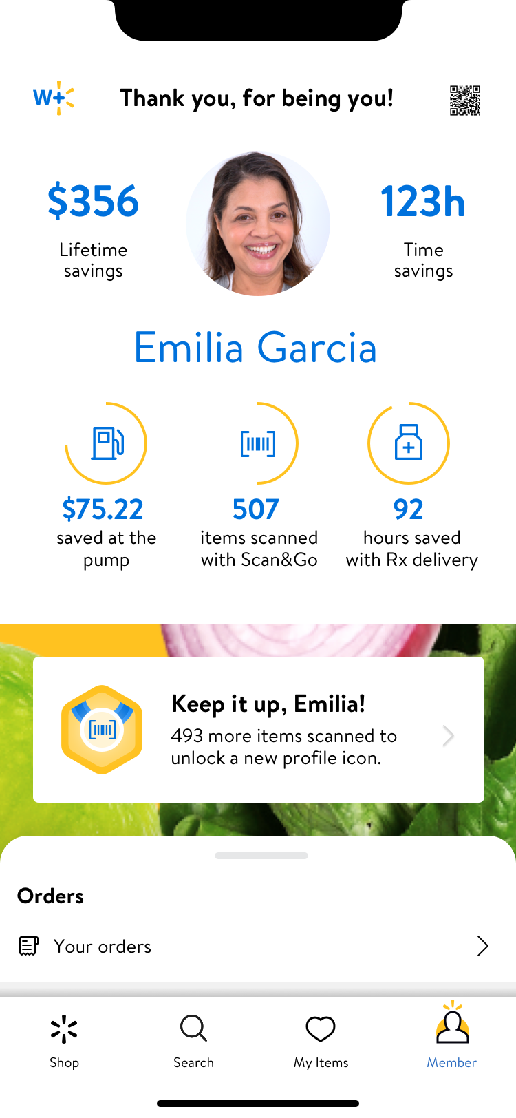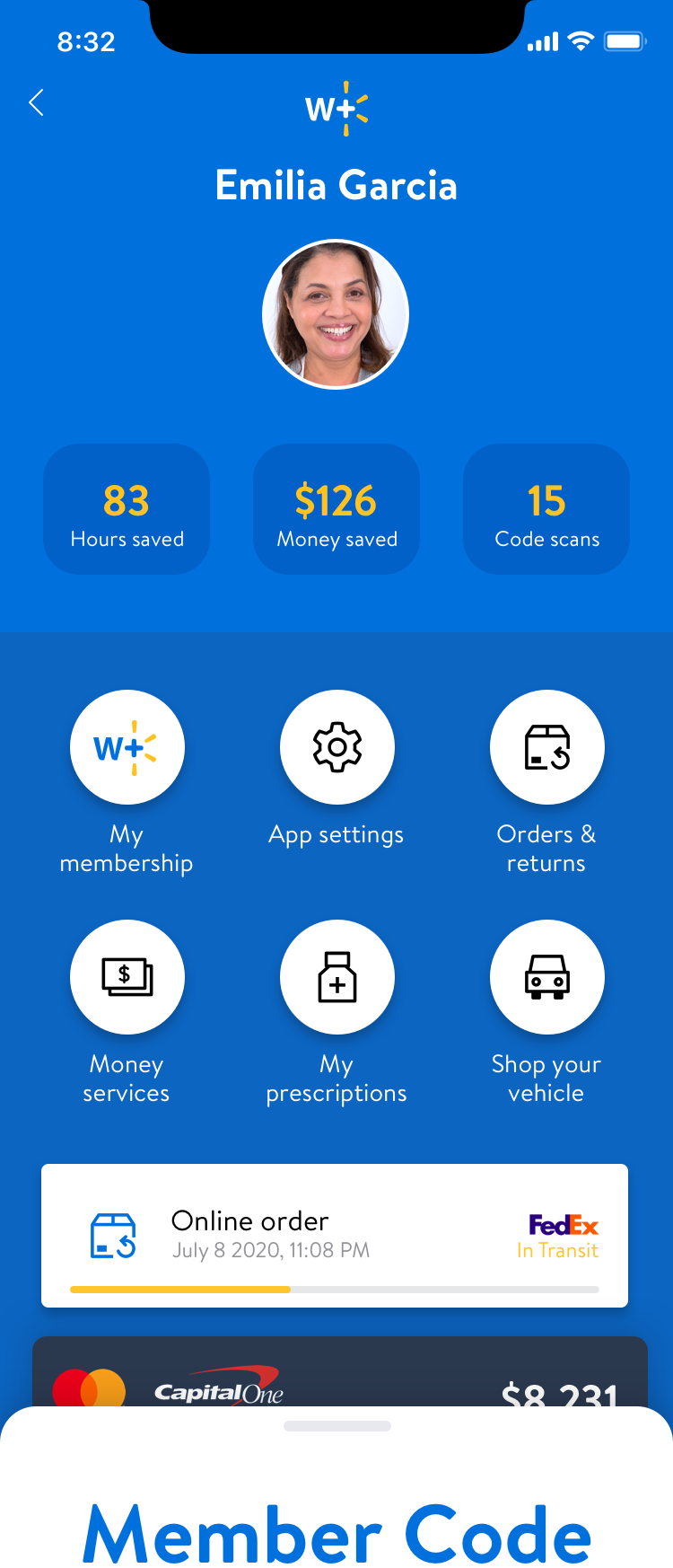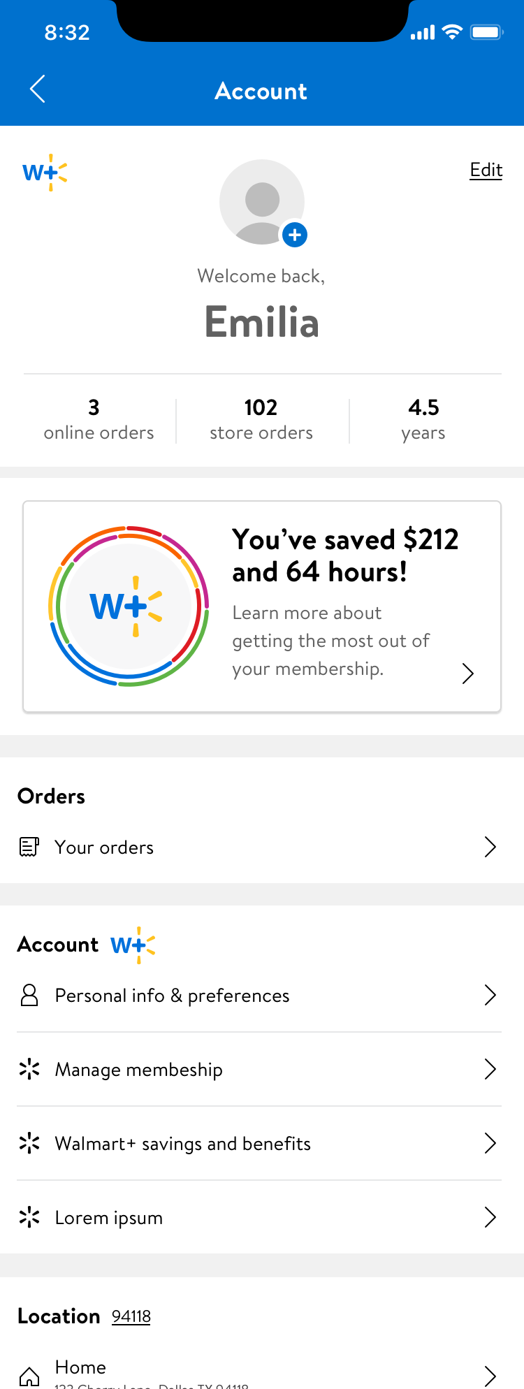Create a premium Walmart subscription membership account page for Walmart+