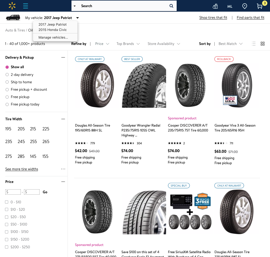 Customers expected tire fitment to work in search results, and those results would be limited to their vehicle’s proper fit. For example, searching for “2012 Honda Civic tires” should only show tires that fit that vehicle. They don’t.